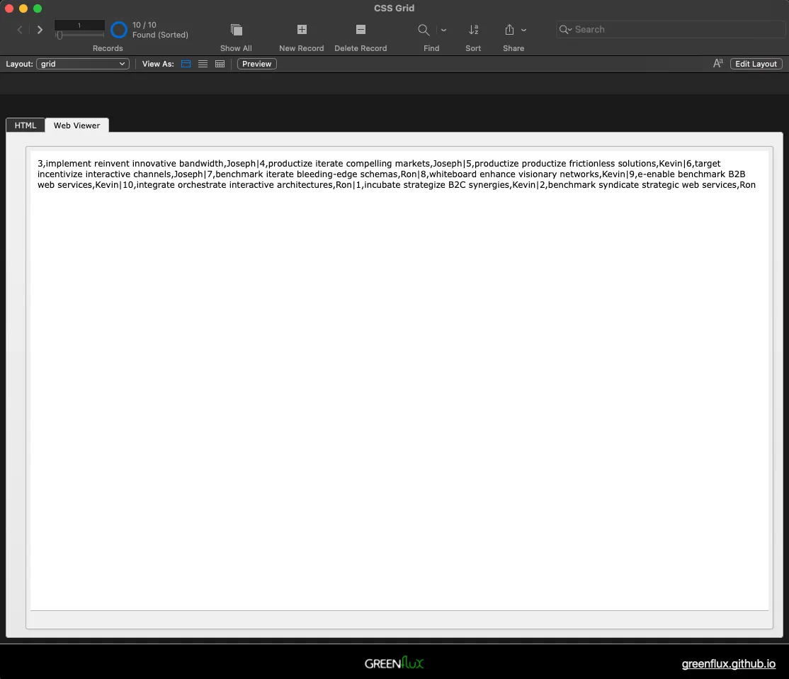 You should now see the FileMaker SQL data in the web viewer, but the grid will now be broken.