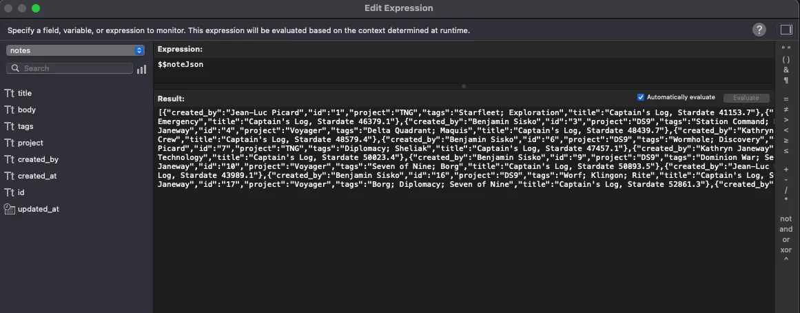 console.log("Using FileMaker data:", logs);