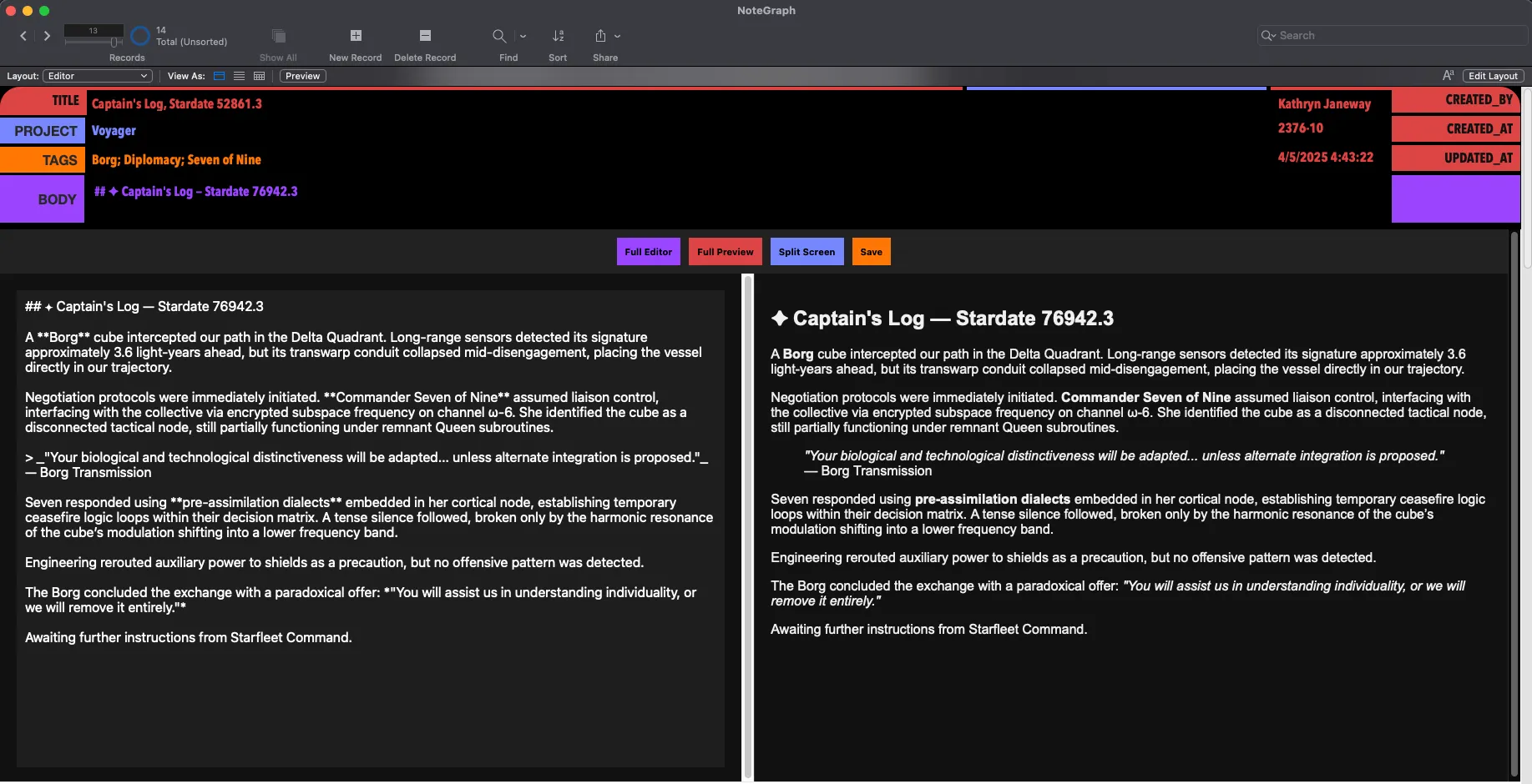A Star Trek Themed Editor Inspired by Obsidian