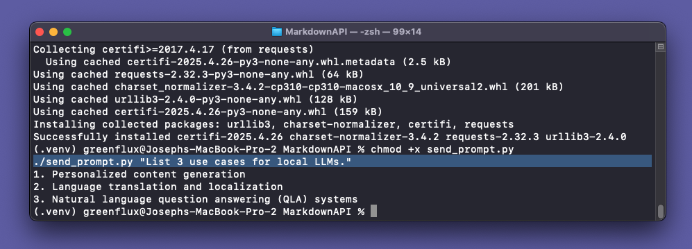 Save it and then test it out from the terminal. You should be able to send a prompt and save the response to a text or Markdown file.
