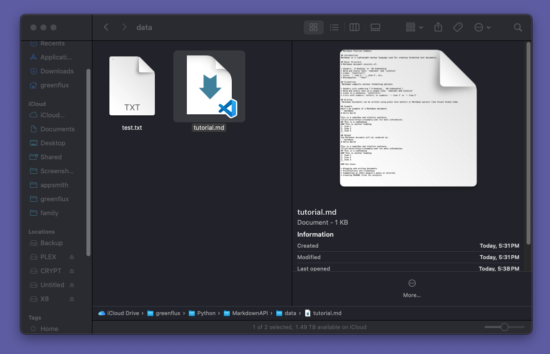 Well look at that! A new tutorial.md Markdown file just appeared. The LLM response still shows in the terminal, but now it also gets saved to a text file if the —save file_name.md option is used. So you can chat with the LLM first and refine the prompt, then save the final version when you’re ready.