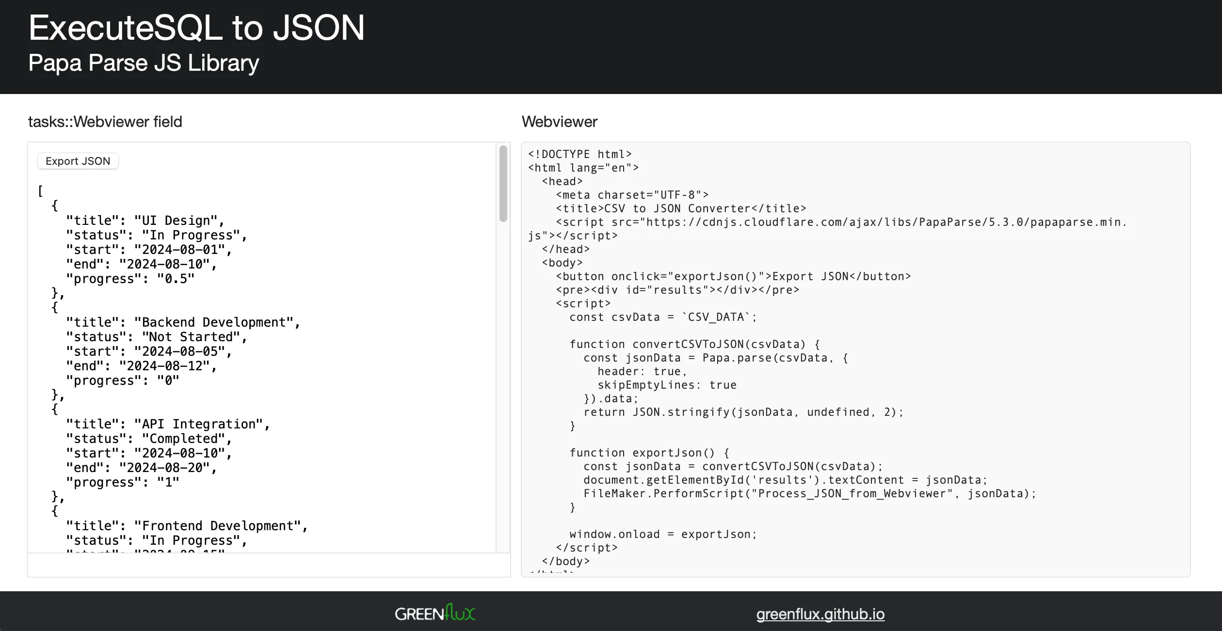SQL to JSON in FileMaker using Papa Parse