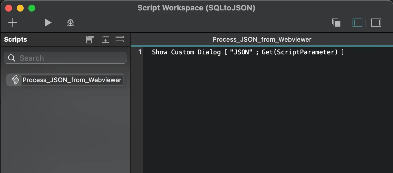 Lastly, I added a script to be called from the Web Viewer, and receive the JSON as a parameter.