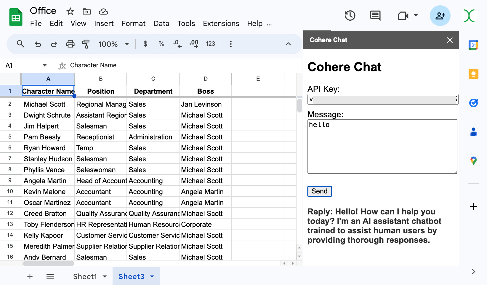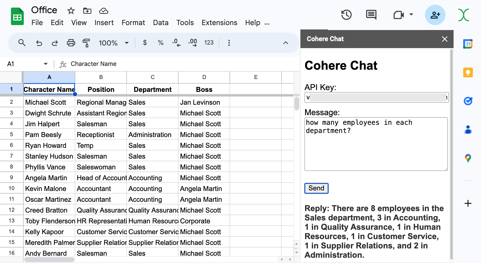 Talk To Your SpreadSheet: Apps Script + Cohere AI