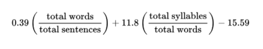 The Flesh-Kincaid formula compares the number of syllables to the number of words: